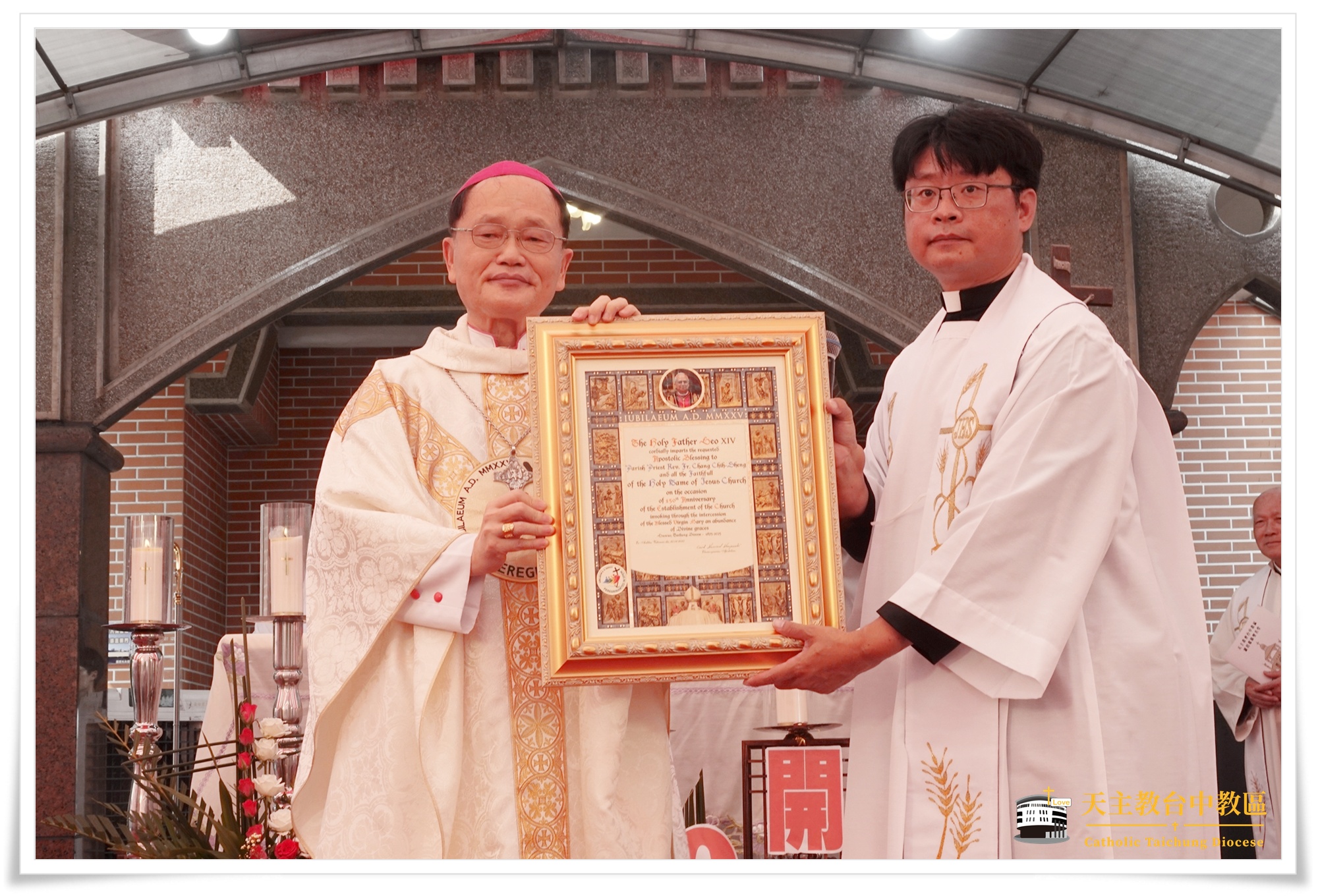 10-04-202510月4日上午,羅厝耶穌聖名堂舉行開教150週年堂慶閉幕感恩聖祭,這不僅是羅厝本堂的重要時刻,更是整個台中教區的喜事。當天,來自各堂區的修女與信友逾千人齊聚在這台中教區信仰的發源地,聖堂內外人潮湧動,喜樂洋溢。在全體喜樂高唱〈爾眾萬邦〉歌聲中,將讚美與感恩獻給上主。