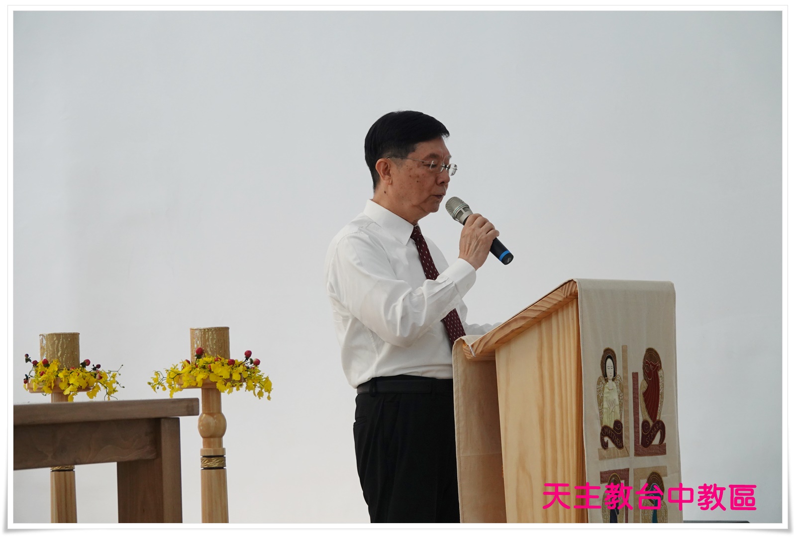 蘇主教在講道中表示:「如同今天福音迦納婚宴的記載,聖母看見婚禮喜宴快沒有酒了,關心的告訴耶穌缺酒的情況,聖母信賴耶穌,並告訴婚宴的侍役『無論耶穌吩咐你們做什麼,你們就做什麼!』耶穌把侍役裝滿七口水缸的水變成連司席都不知道的上等好酒,使婚宴圓滿順利,賓主盡歡!1993年台灣邁入高齡化社會之際,修女們如同聖母,注意到了隨著人口高齡化,銀髮族長照的多元服務需求,修女們立下宏願,下定決心變賣座落於台中市北區的修道院,購置這裡近50公頃的雜木林,希望運用這塊山林成為辦理老人福利服務園區,將它命名為『天主教聖愛山莊』。如同俗語『十年磨一劍』的耐心與細工,修女們歷經30年分三期的許多考驗與努力,鍥而不捨,克服萬難,在聖母的代禱及天主恩佑下,今天舉行第三期美侖美奐的建築群落成典禮,打造全台第一座低碳樂齡服務園區,涵蓋日照日托、安養中心、快樂學堂,以及高齡教育研發大樓等,提供長照、社福、靈修等相關學習空間等多元服務,創造與大自然融合的生態保護區的安養環境,並兼具身心靈健康、幸福、快樂生活學習優質園地的最後一塊拼圖。」